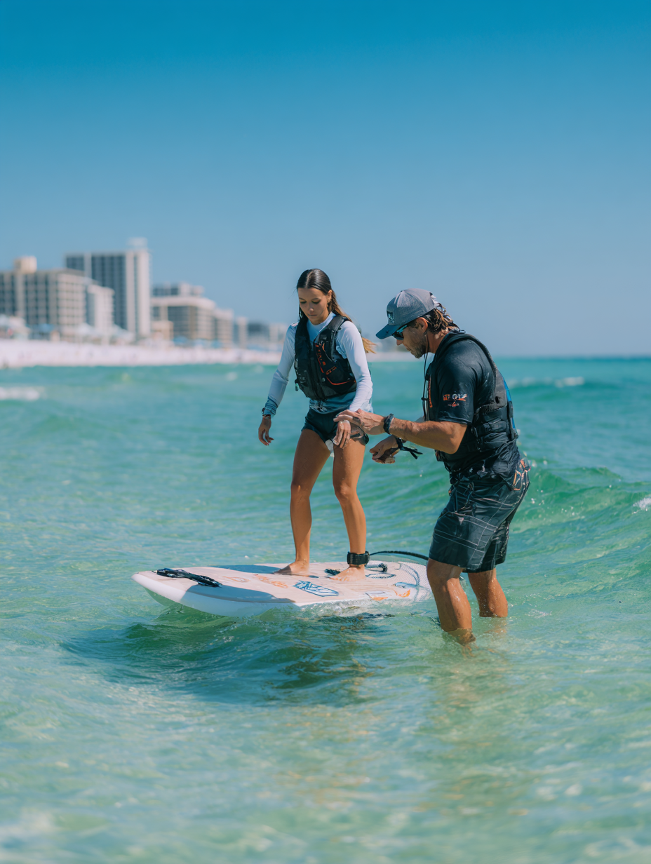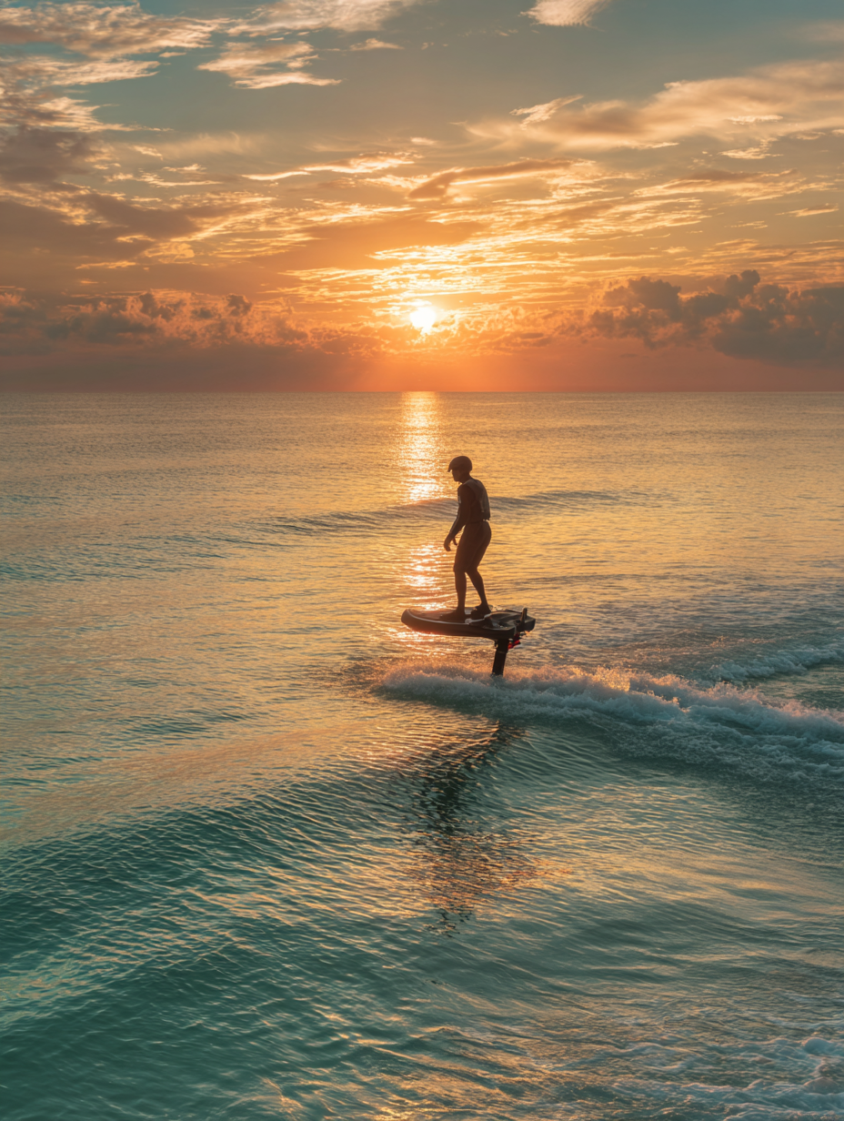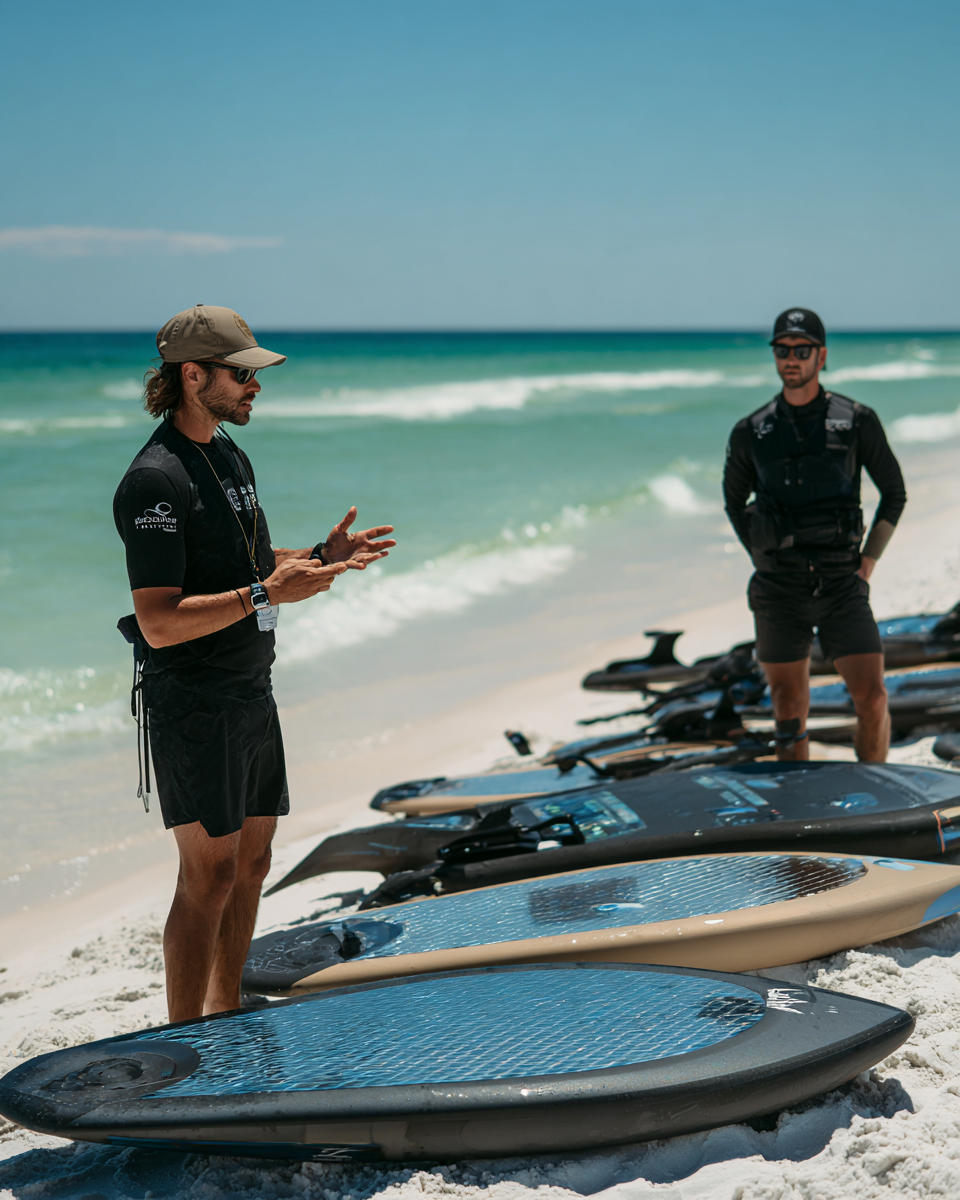 We prioritize your safety with certified instructors and premium equipment maintained to the highest standards. Every session delivers unforgettable views of the Gulf while you experience the thrill of electric hydrofoil riding.